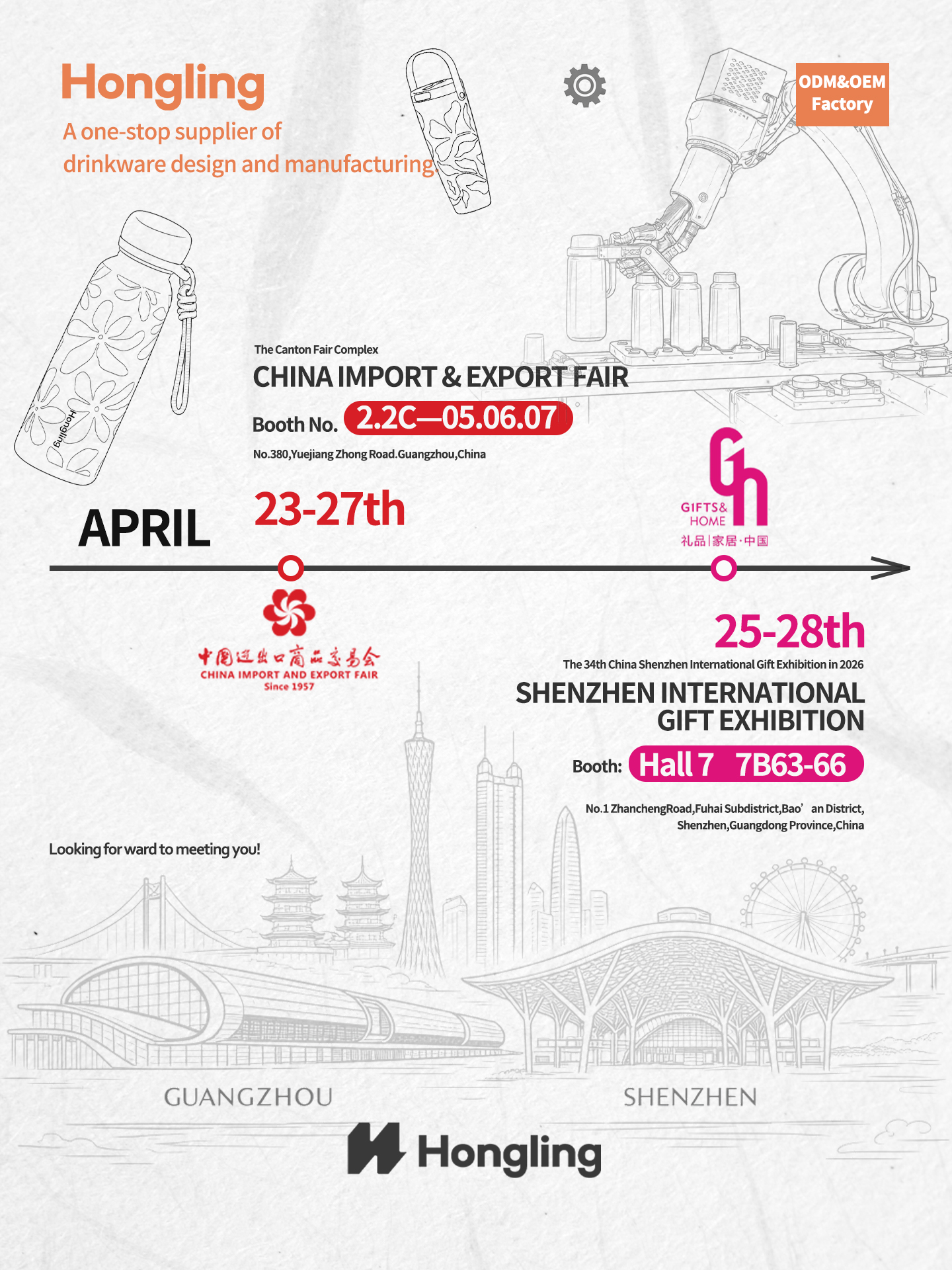 Hongling, an original intelligent manufacturer specializing in drinkware with over 200 national patents, will showcase more than 30 brand-new premium drinkware designs at two renowned exhibitions.