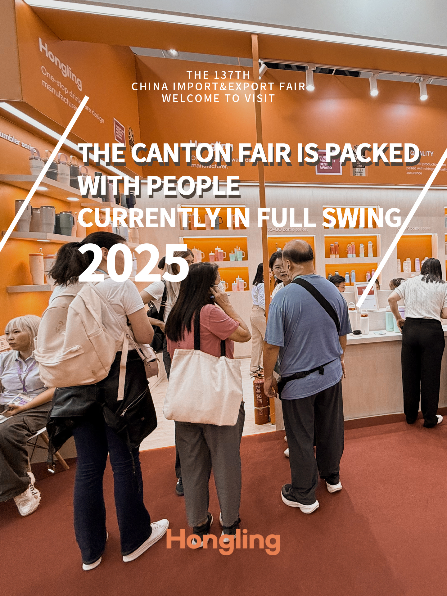 The 137th China Import and Export Fair (Canton Fair) opened grandly today, with Zhejiang Hongling Industry & Trade Co., Ltd., a professional stainless steel water bottle manufacturer, making a stunning debut with five series of patented new products. The booth saw overwhelming foot traffic, with buyers from Europe, America, Southeast Asia, the Middle East, and other regions stopping to experience the innovative products and discuss cooperation opportunities.