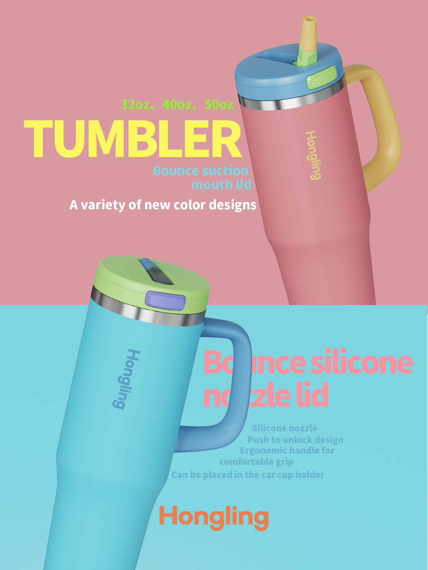 ▶ 40oz Handle Cup with Silicone Plug: