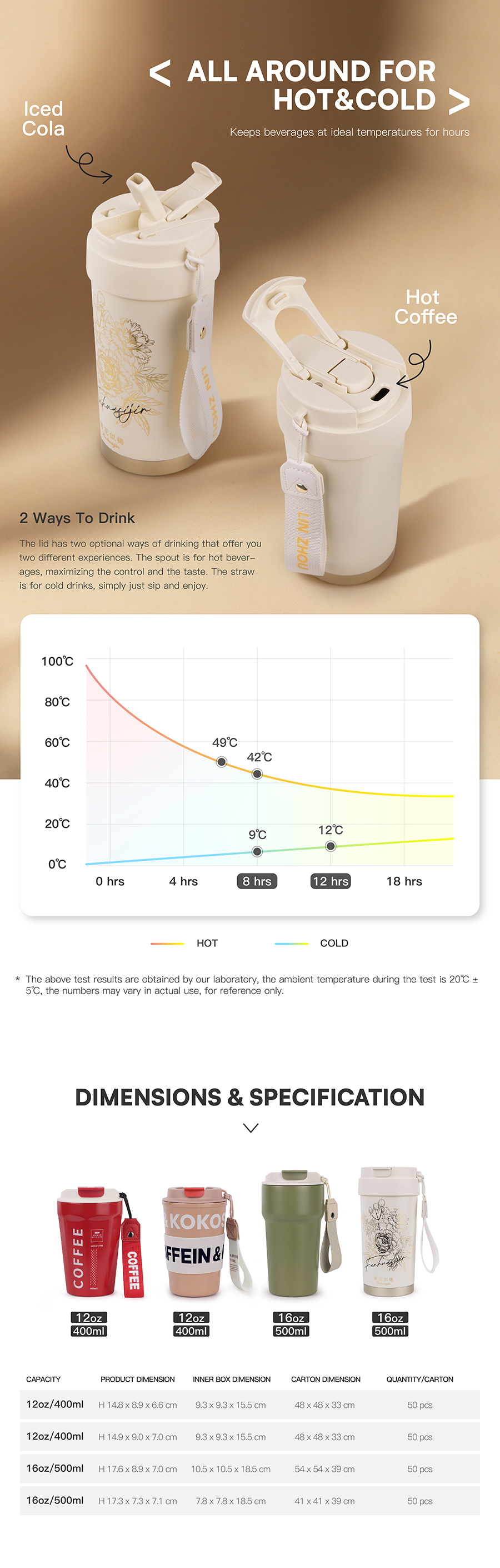 Material: The double-wall vacuum insulation made of high quality professional grade 304 double-layered stainless steel, durable and prevents the increase of bacteria, also keeps drinks odor free.