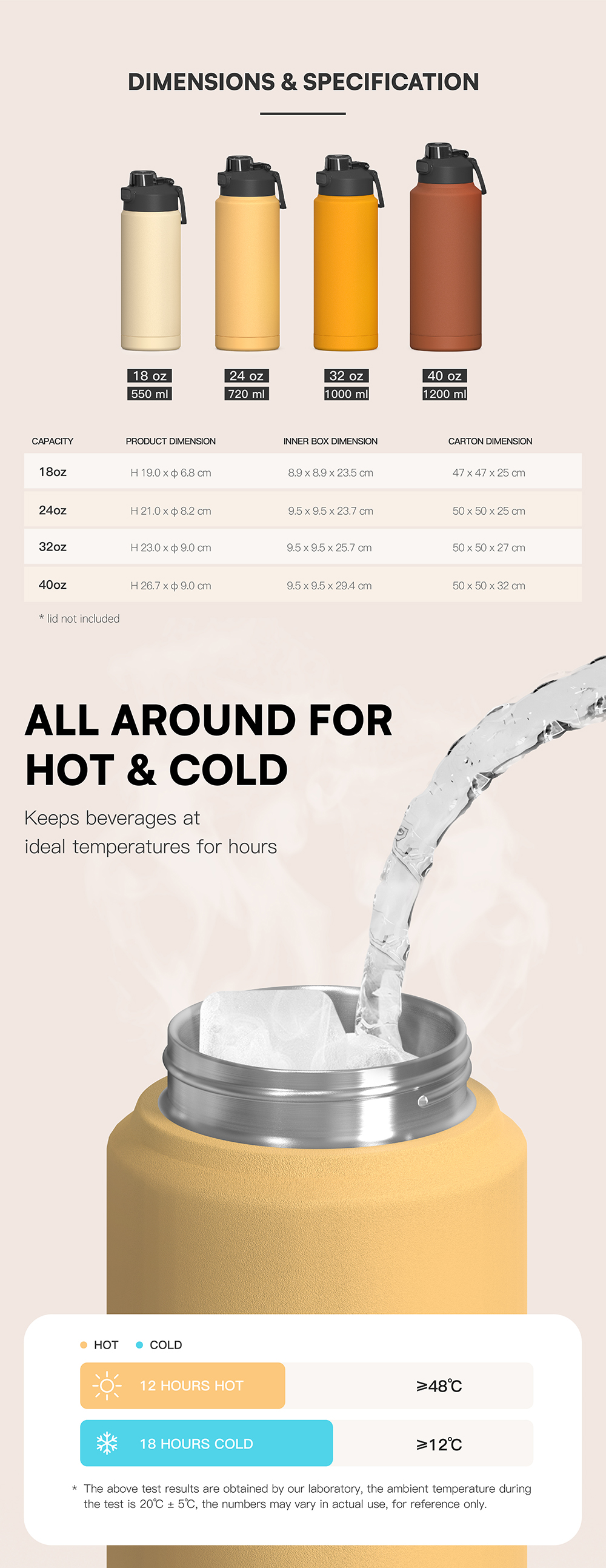 18oz/24oz/32oz/40oz New water bottle with Bounce double drink cap