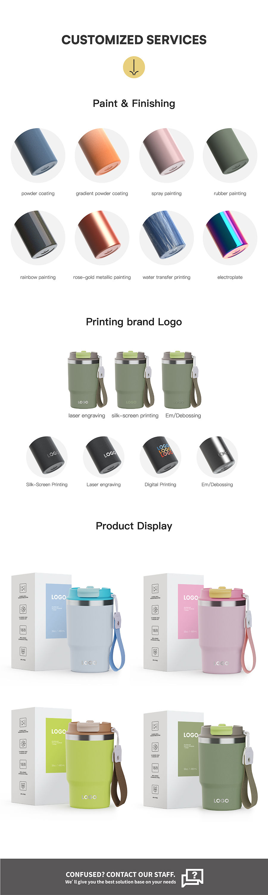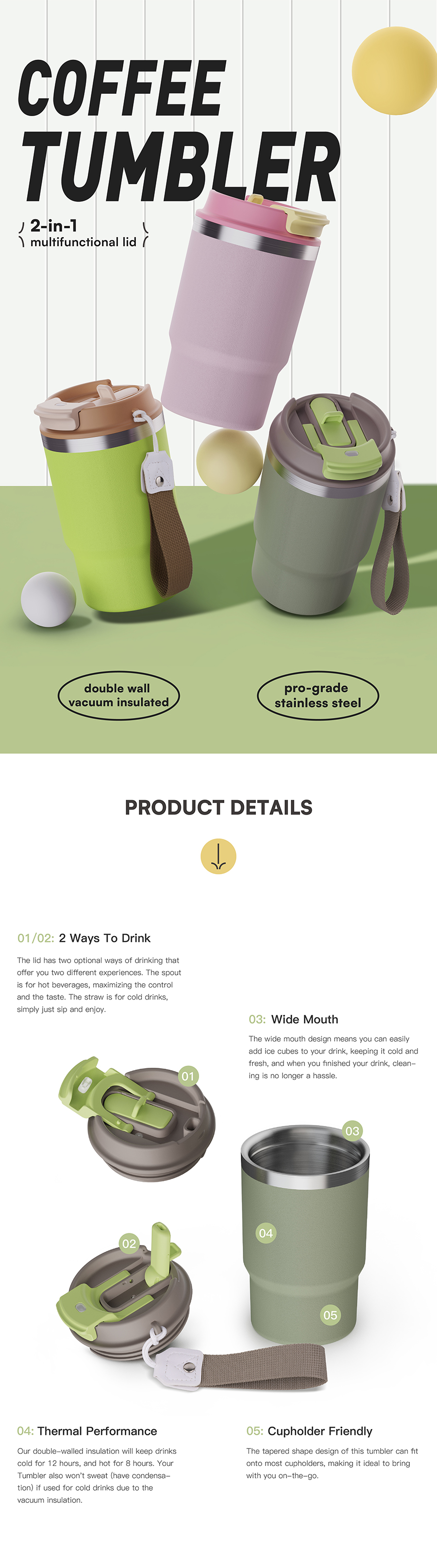 Custom wholesalecoffee mug Leak-proof insulated coffee travel tumbler with 2 in 1 lid Thermos Cup wholesale BPA-free water bottle