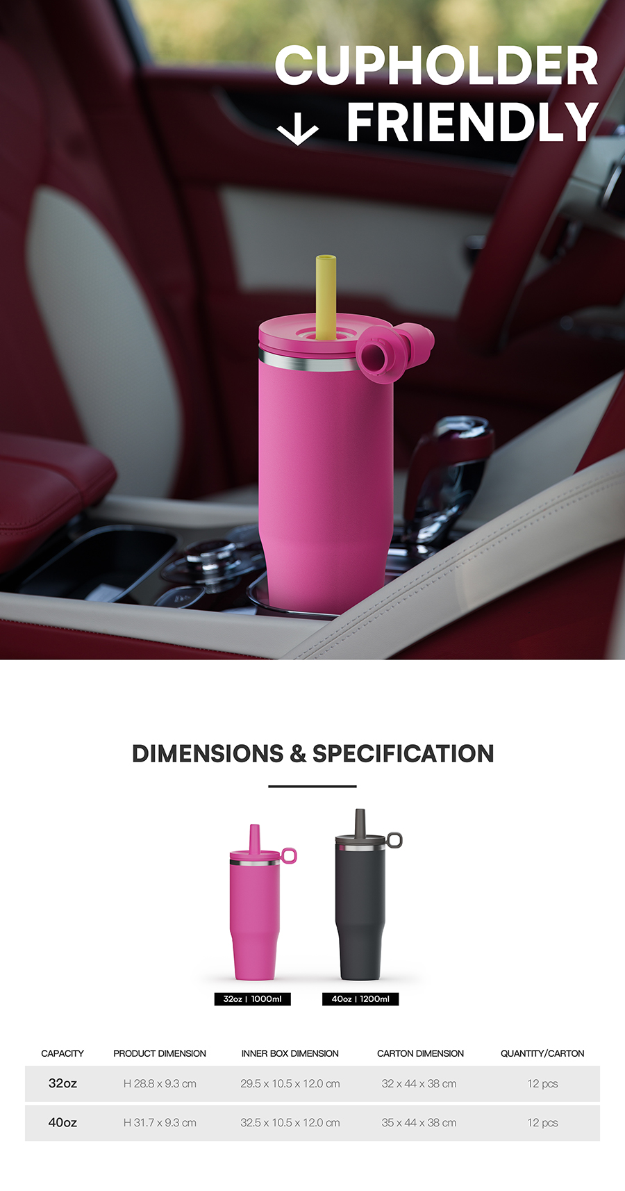 Cupholder Friendly: Tapered shape with handle makes it the ideal cup -- Take Us With You wherever you go