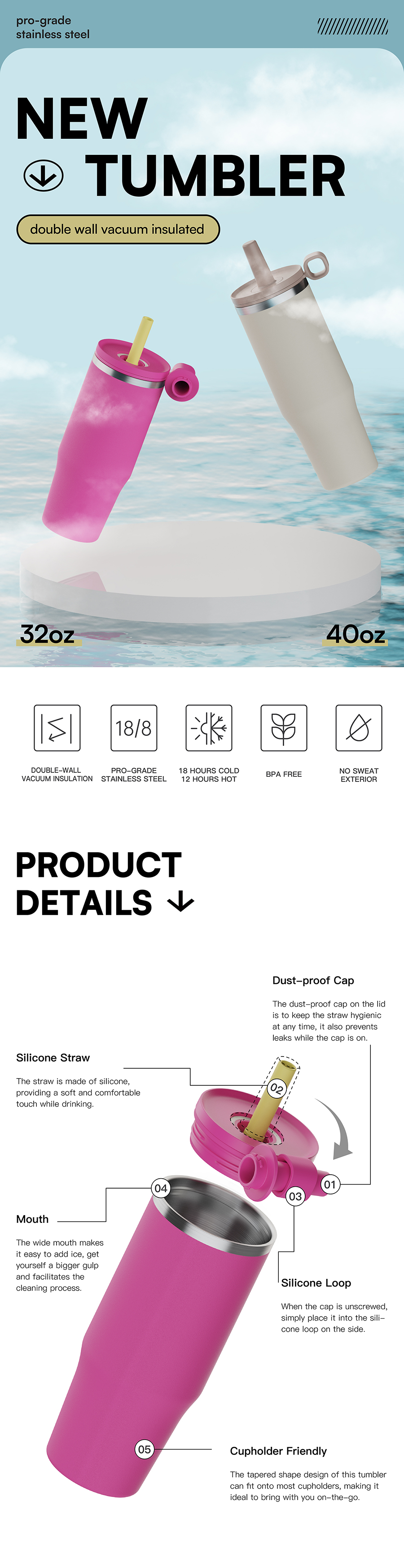 Double Wall Insulation: Keeps beverages hot or cold for hours