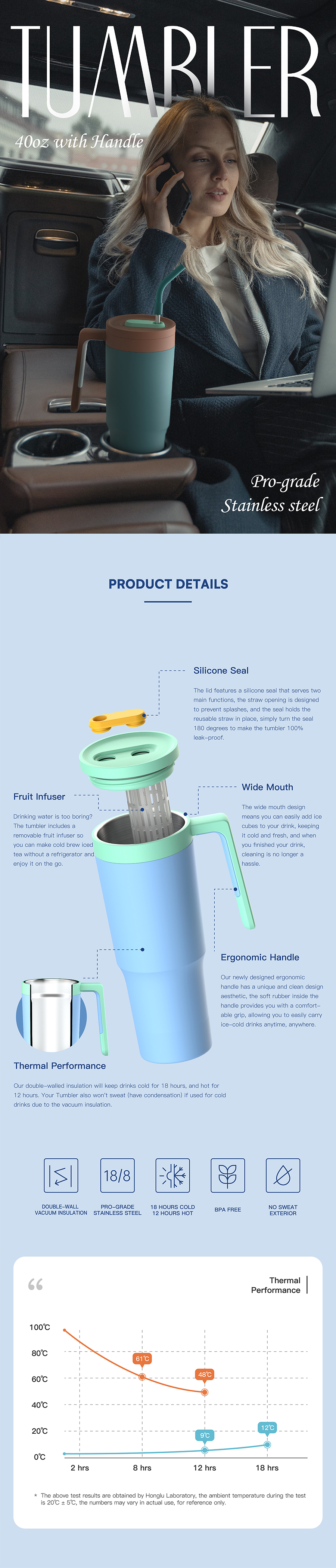 Double Wall Insulation: Keeps beverages hot or cold for hours