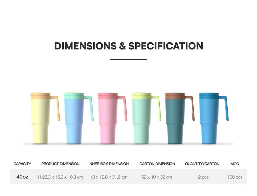 40 oz Tumbler with Handle and Straw Lid Insulated Cup