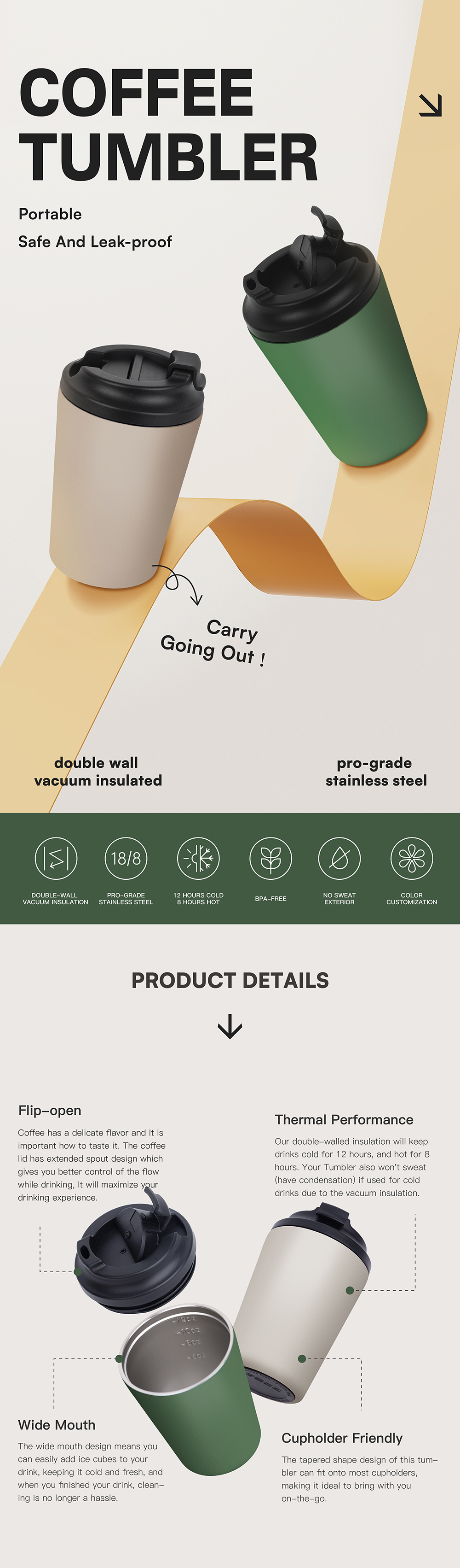 2. Compact & Portable:8oz/12oz Ideal Capacity,Anti-Slip Grip