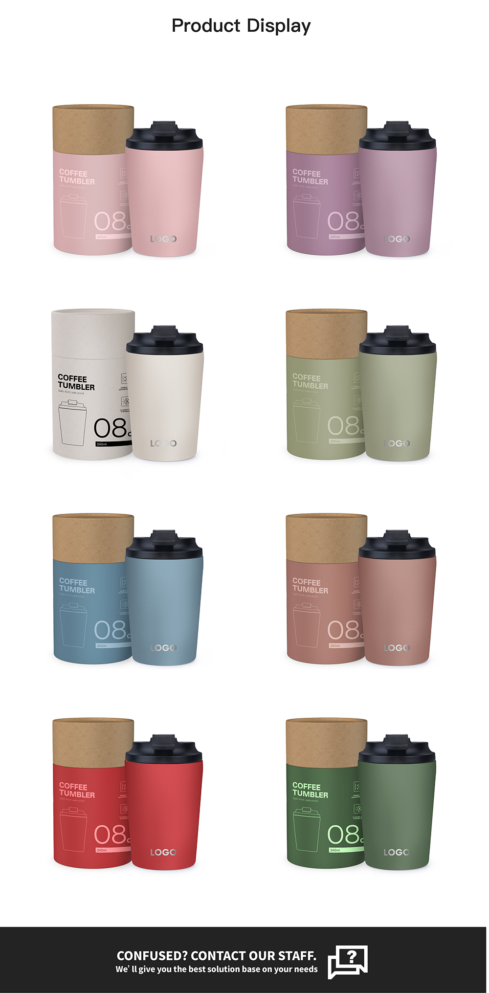 Deep Customization: Choose colors, sizes (8oz/12oz), shapes (straight/waisted), and materials (stainless steel/Tritan/ceramic).