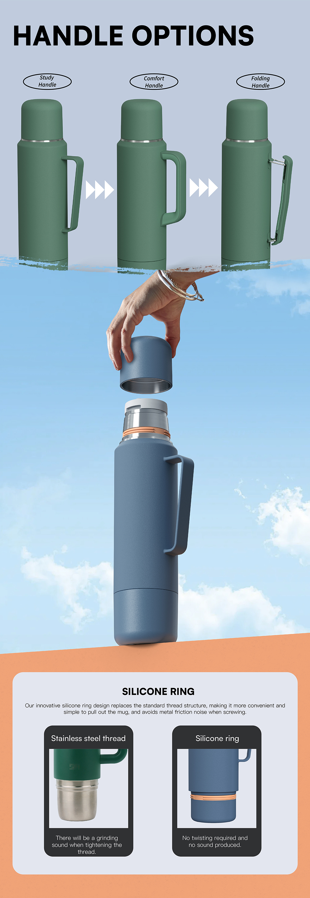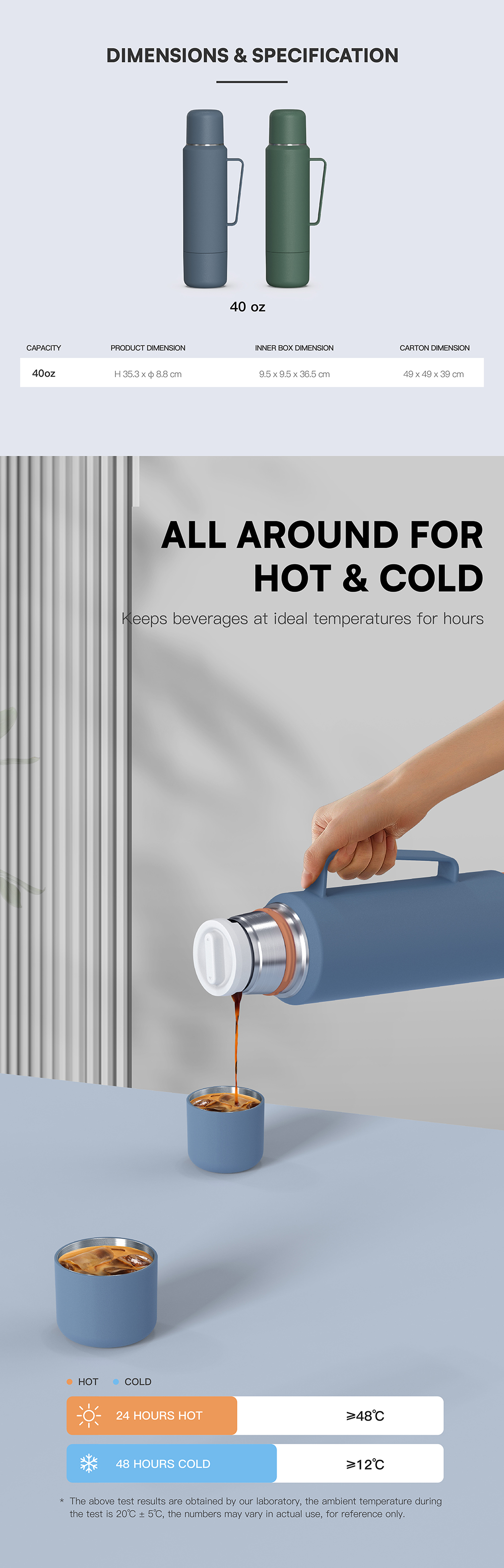 BPA-Free 40oz Stainless Steel Travel Coffee Bottle with Two Sharing Cups