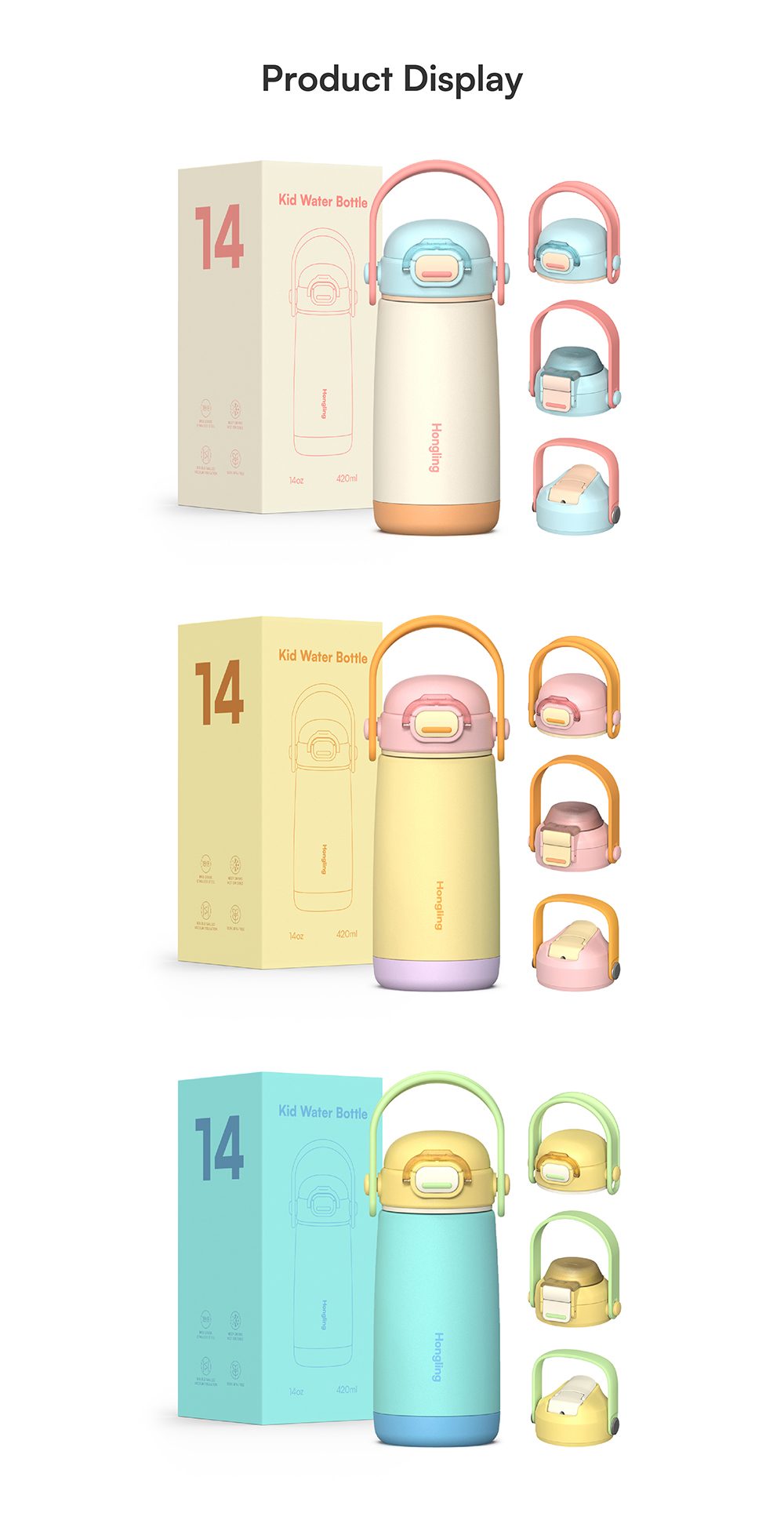 Custom wholesale kids water bottle 12oz/16oz Straw cup BPA-free water bottle Outdoor sports thermos