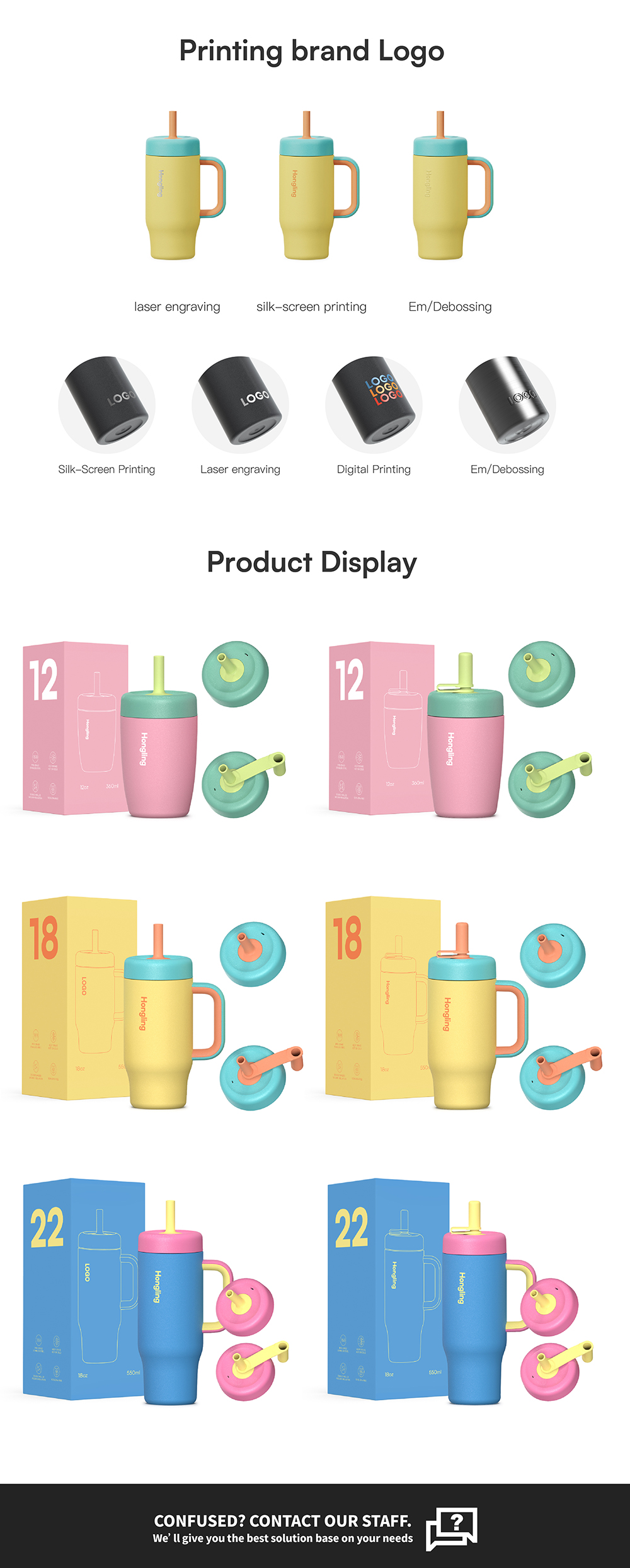 Hongling kids water bottle 12oz 18oz 22oz Kids Tumbler with Handle Straw Customizable Designs Mugs Tumbler BPA Free Stainless steel tumbler manufacturer