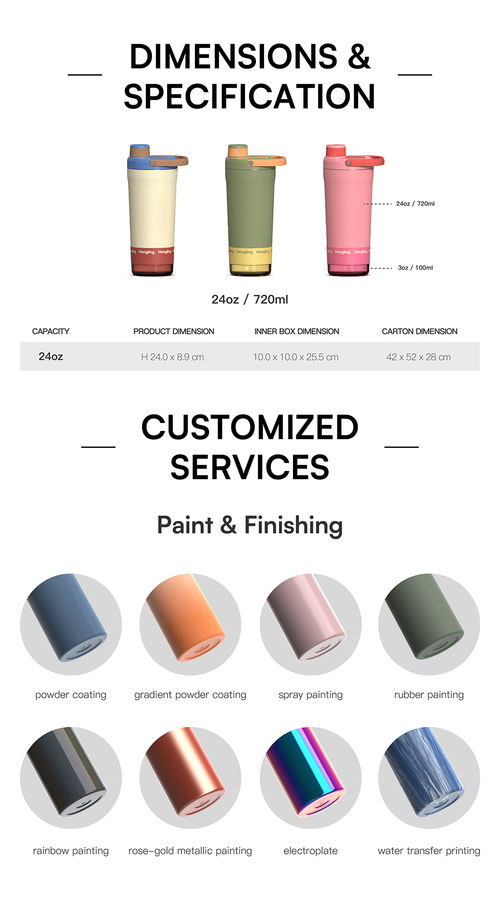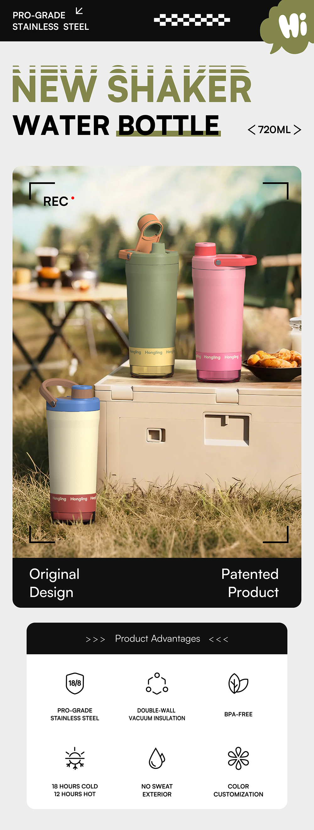 Hongling Water bottle Shaker bottle Leak Proof Design BPA Free Insulated stainless steel water bottle manufacturer
