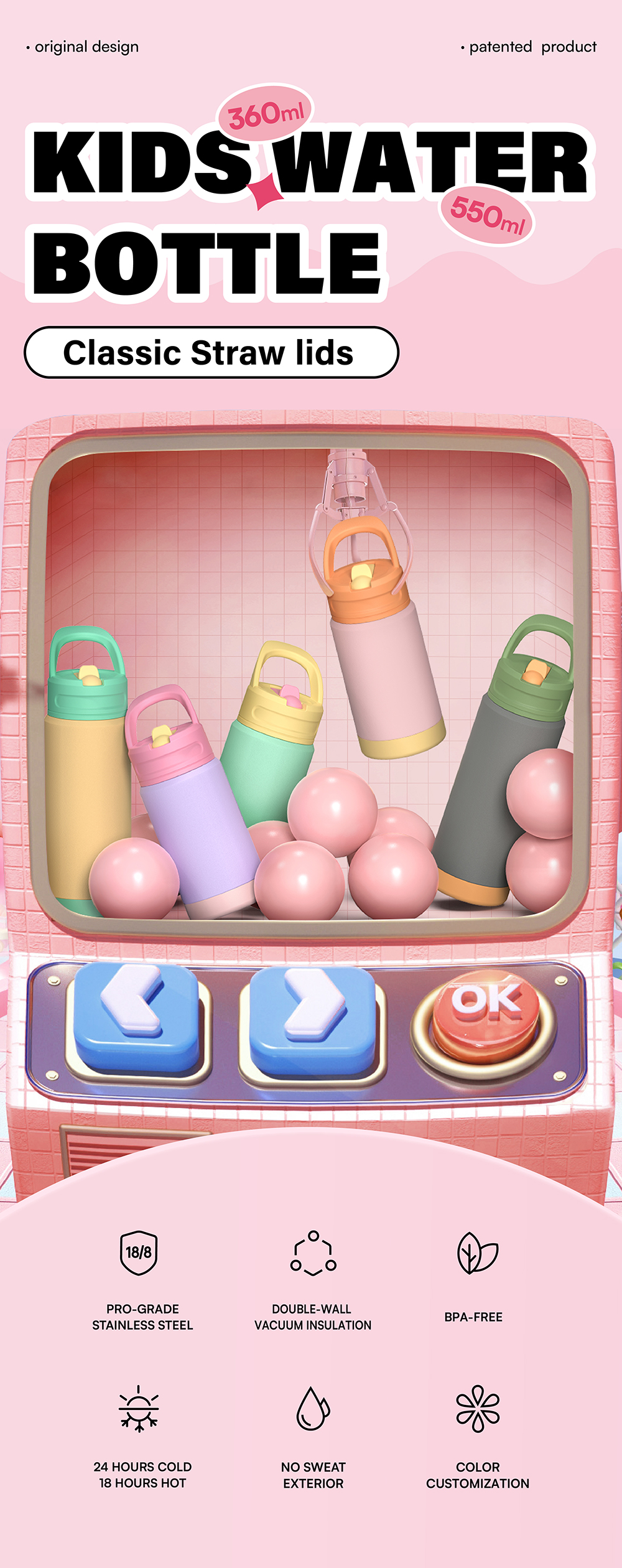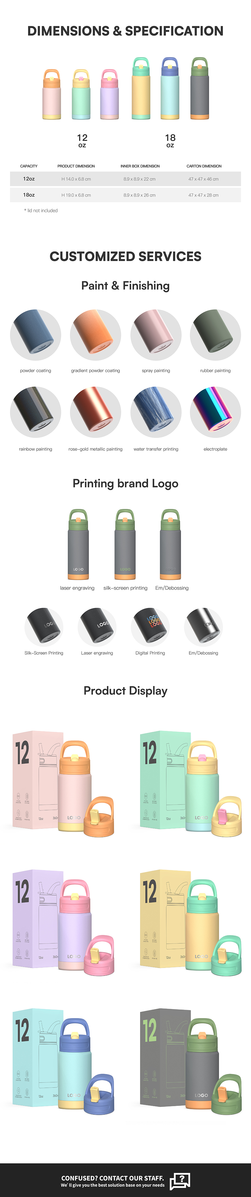 Hot Sale Kids Water Bottle Customized Logo Stainless Steel Baby Water Bottle Customized Logo Flask12oz 18oz metal crown lid
