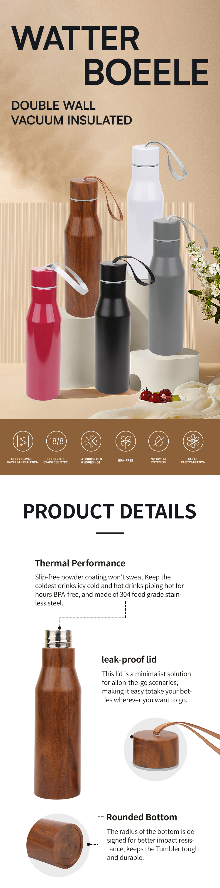 One hundred colors available for customization 304stainless steel Pulling the rope makes it convenient to carry The cup body is ergonomic and easy to hold.