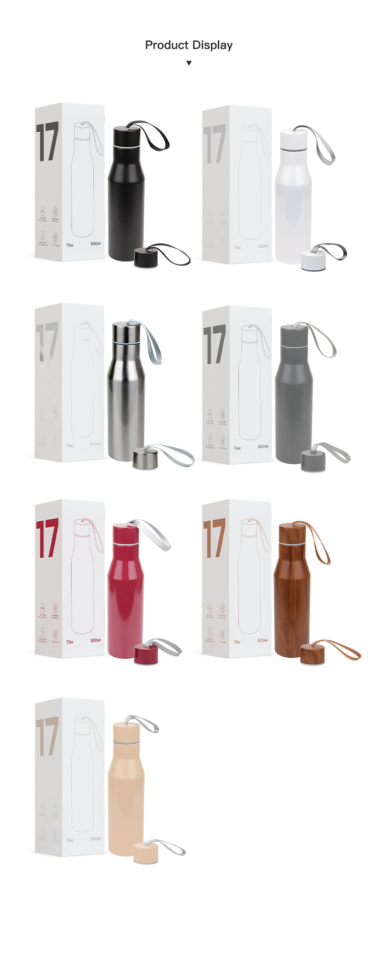 Small-mouth bottle with a drawstring handle Custom wholesale 17oz stainless steel insulated water bottle Double wall thermos cup