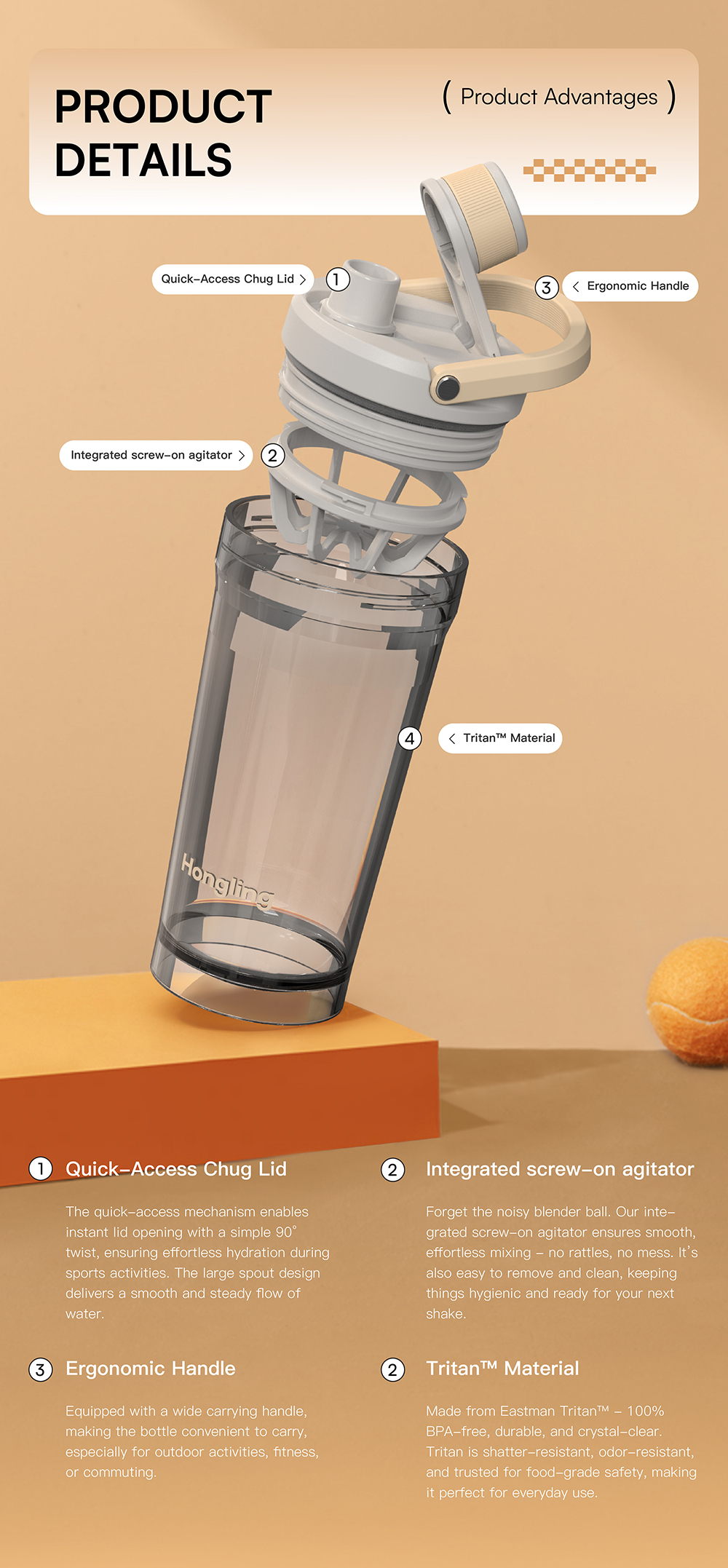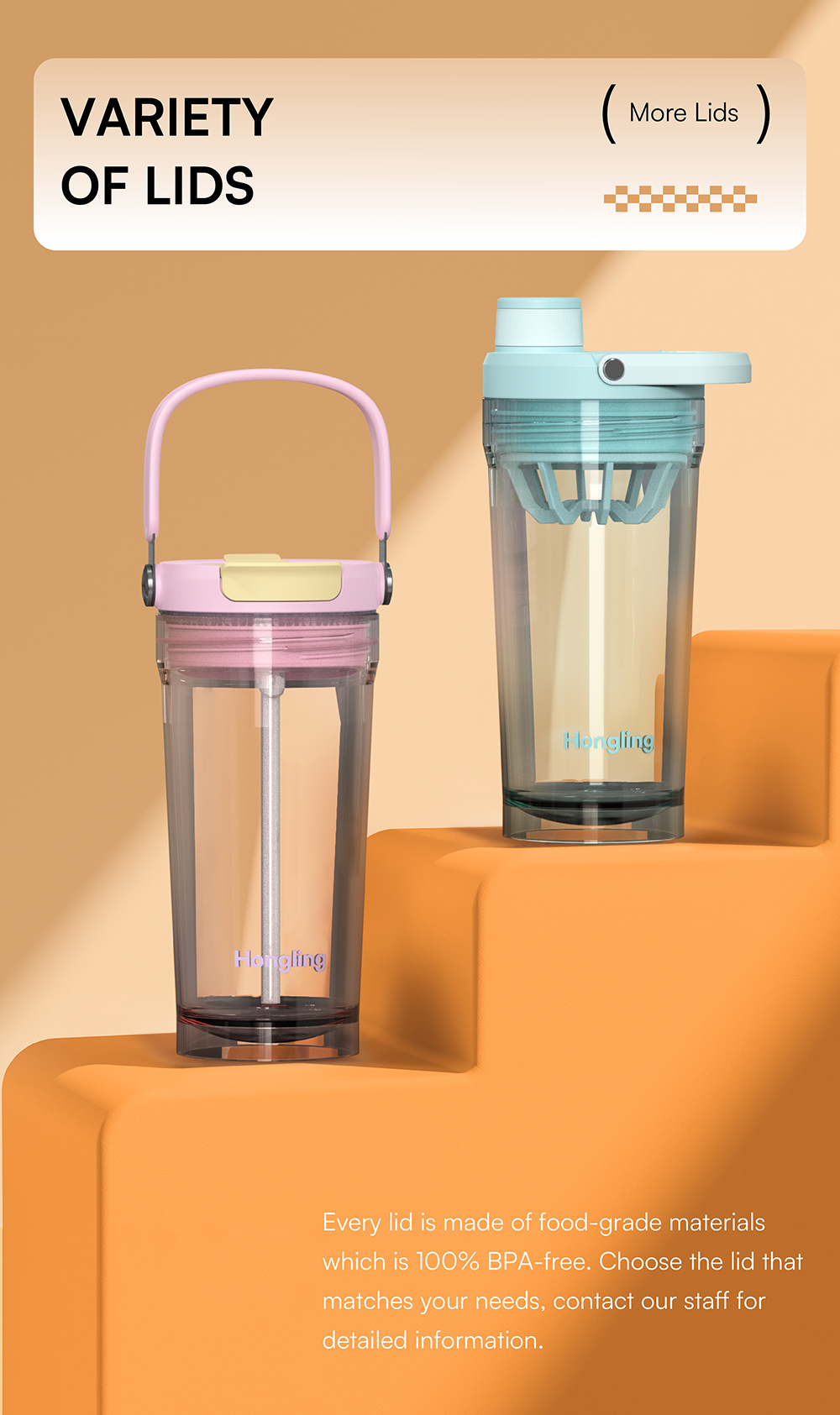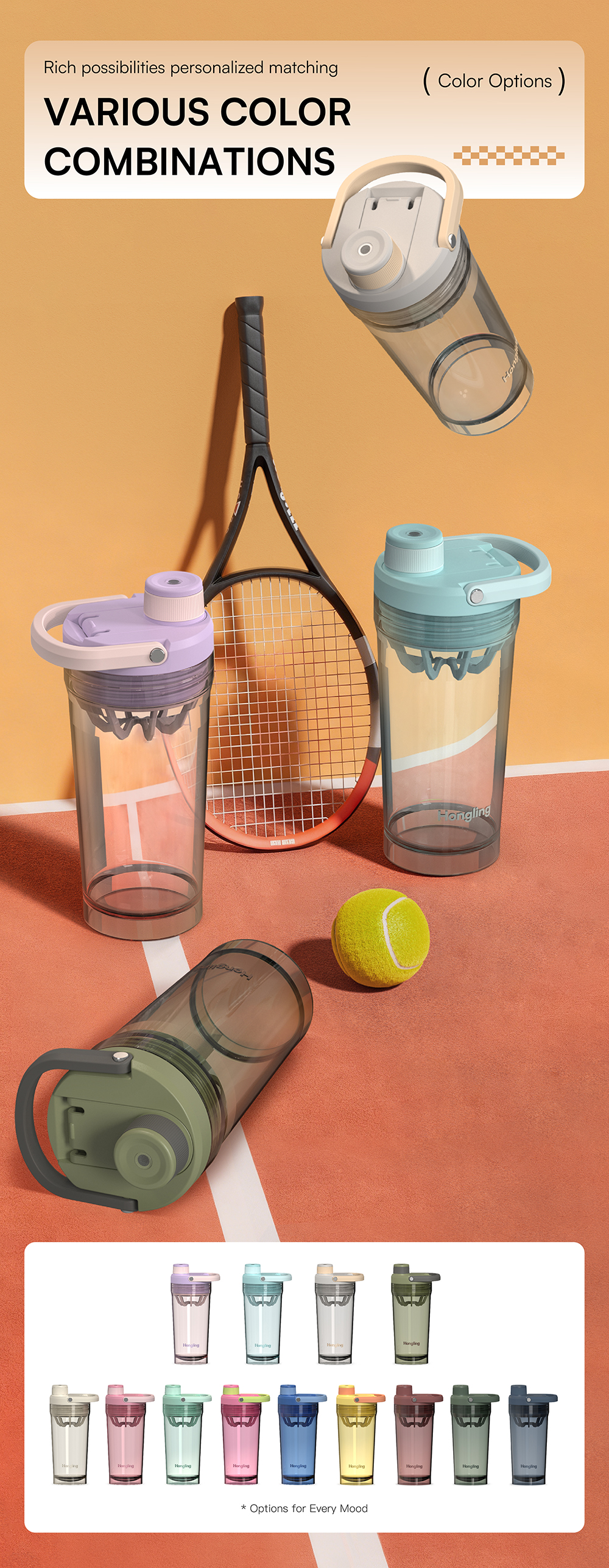 1. Tritan material, safe for drinking and BPA-free. 2. Comes with a built-in stirrer for easy mixing. 3. Available in 16 colors, with customization options for color, capacity, and cup shape.